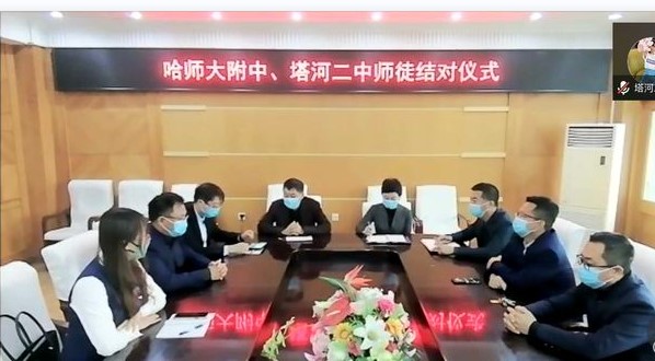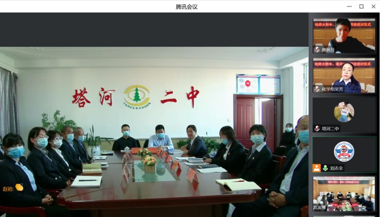 (李苗/文)为深入贯彻落实教育部《“十四五”县域普通高中发展提升计划》和《黑龙江省“十四五”县域普通高中发展提升实施方案》,推进我校与塔河县地方人民政府、塔河二中签定的“县中托管帮扶项目”落实,10月13日下午,哈师大附中与塔河二中师徒结对仪式于线上举行,校党委副书记李庆霞、塔河县人民政府副县长刘伟参加会议并讲话,塔河县教育局局长刘伟、哈师大附中校长刘振成、塔河二中校长党支部书记、校长刘鑫、两校班子成员、教研室主任及结对教师参加会议。