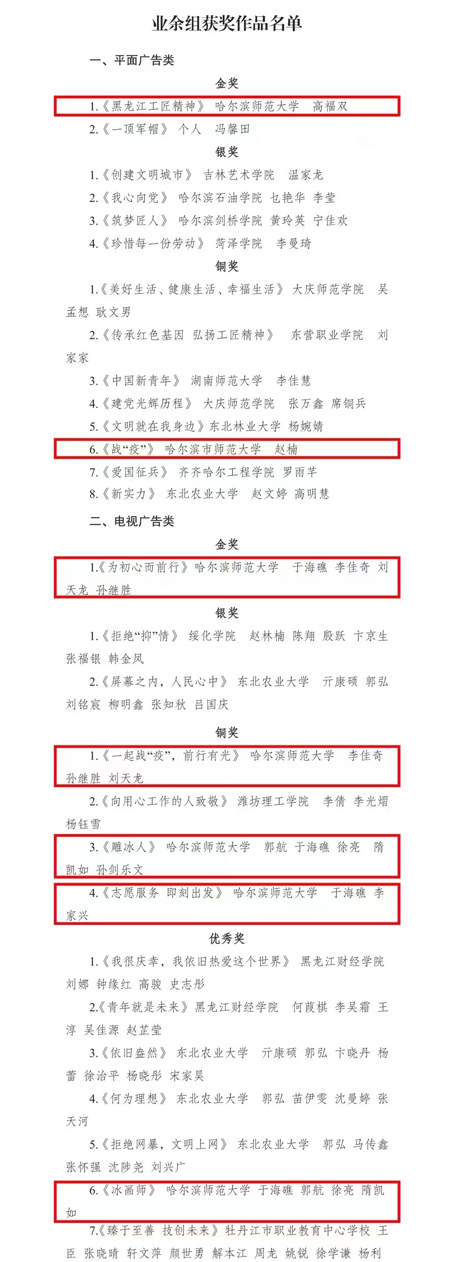 近日,“永远跟党走”公益广告创作大赛活动获奖名单公示。我校斩获金奖2项,铜奖6项,优秀奖1项,共9个奖项,荣获“年度十佳公益广告创作单位”“年度优秀组织奖”称号。