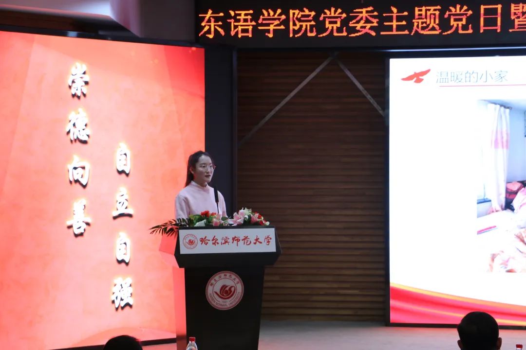 学院教师第一党支部书记、日语系副主任王洋,院学生团工委副书记韩璐分别代表学院教师、学生进行发言。