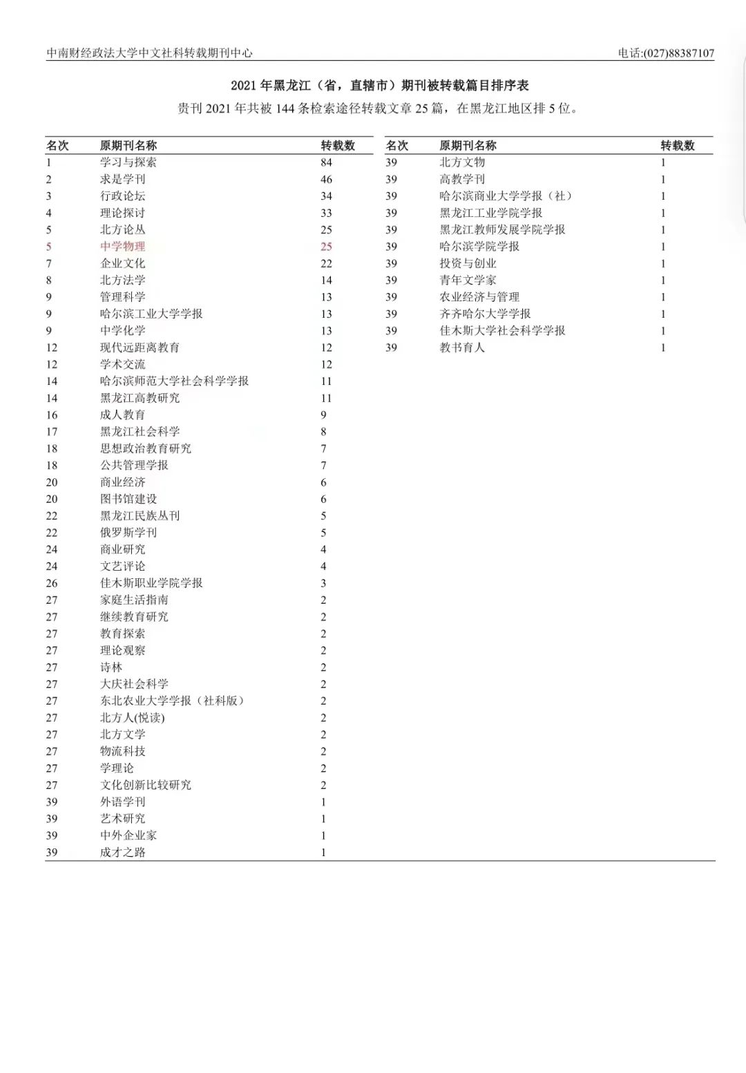 《中学物理》创刊于1982年,是中国教育学会物理教学专业委员会会刊;被中国科学技术信息研究所编制的《中文核心期刊(遴选)数据库》以及中国知网、万方、维普等重要数据库收录;入选第二十七届北京国际图书博览会(BIBF)“2020中国精品期刊”;入选2021年中国期刊设计艺术周优秀封面设计;连续入选人大“复印报刊资料”基础教育教学类重要转载来源期刊,2021年全国教育类24个专题转载数总排名49/474;2021年黑龙江(省、直辖市)期刊被转载篇目排名5/313。