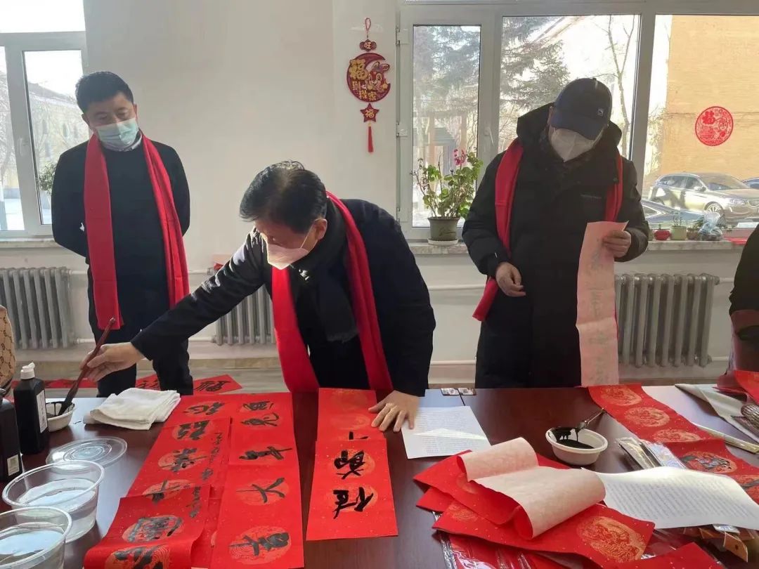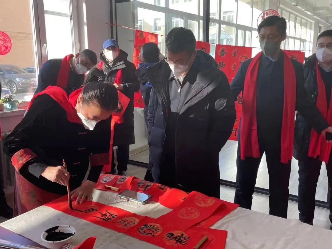 活动邀请了中国书法家协会理事、黑龙江省书法家协会副主席、我校美术学院书法系主任李文宝;中国书协女书家委员会委员、黑龙江省书法家协会副主席、我校美术学院书法系党支部书记、书法系副主任芦海娇;黑龙江省书法家协会理事、我校美术学院篆刻教研室主任于海波;黑龙江省书法家协会理事、我校美术学院书法系教研室主任郑长华;哈尔滨青年画院副院长、我校美术学院书法系教师张志超及美术学院书法专业学生现场书写春联和福字。活动现场年味十足、气氛热烈,师生们共同挥毫泼墨,将吉祥如意和新一年的美好愿景述诸笔端,一副副韵味厚重的春联,饱含着温润隽永的墨香情谊;一行行灵秀俊逸的书法作品,呈现了楹联文化的格律之美。