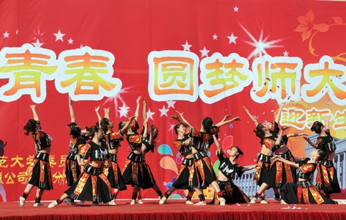 10月12日下午,由校团委主办的2011年迎新联欢会在我校基础教育学院运动场举行。党委书记,党委副书记王为正,党委副书记王广明,党委常委、副校长徐晓风,党委常委、纪委书记蒋晶洁及部分机关、学院的领导出席并观看了演出。