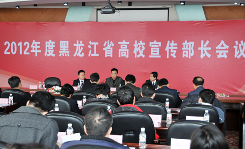 3月7日,2012年度黑龙江省高校宣传部长会议在我校松北校区图书馆一楼报告厅召开。省委高校工委副书记李东明、我校党委书记、党委副书记王广明、省委高校工委宣传部部长裘杰出席会议,全省各高校宣传部部长参加会议。