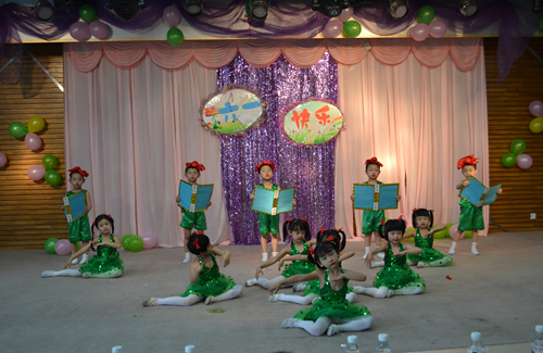 演出在大班学生的表演中拉开帷幕。孩子们的诗朗诵声情并茂,使家长、老师们都感动得热泪盈眶;由孩子们演的话剧也是别出心裁,舞蹈《HAPPY》更是掀起了整台演出的高潮。整台演出在大一班全体同学演唱《感恩的心》的旋律中画上圆满的句号。