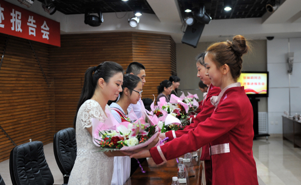 报告会上,张丽莉同志先进事迹报告团成员佳木斯市第十九中学丽莉班学生张佳岩、哈医大附属第一医院重症医学科主任赵鸣雁、佳木斯市第十九中学副校长靳艳萍、佳木斯市郊区林业局造林工作站站员张丽莉老师爱人李梓烨、黑龙江人民广播电台记者邹韵分别以《师爱点亮人生》、《一位了不起的患者》、《丽莉,我们等你回来》、《你就是我的唯一》、《一次终身难忘的采访》为题,结合亲身经历、亲身体会与感悟,从不同侧面深情讲述了我校校友张丽莉老师危急时刻的大义大勇和平素生活的大善大美,使现场观众的思想受到了深刻的教育,心灵受到了震憾和净化。报告团成员的精彩报告不时赢得现场热烈的掌声。