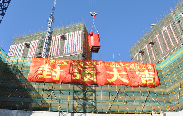 黑龙江现代文化艺术产业园区A1区项目建设自2011年3月29日破土动工以来,园区建设指挥部与建设施工单位按照“建设精品质量工程”和“建设精品文化新城”的要求,精心组织,密切合作,严格管理,坚持高标准、高质量施工,克服施工场地有限、林兴路拓宽改造影响等诸多困难,放弃节假日休息时间,抢抓黄金施工期,坚持全天候施工作业。表现出勇于进取、肯于吃苦、敢打硬仗、敢于担当的精神风貌。项目建筑主体封顶标志着园区建设向前迈出了更加坚实的一步,必将对推动我省经济大发展、文化大繁荣和我校强校建设产生重要而深远的影响。