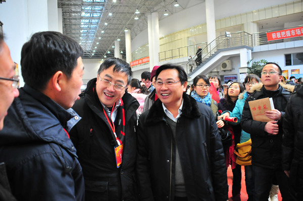 在全国2013届高校毕业生就业面临严峻考验的复杂形势下,12月12日上午,我校2013届毕业生大型供需洽谈会在松北校区体育馆阳光大厅和图书馆三楼报告厅两个会场如期举行。校党委书记亲临招聘会现场指导工作,与用人单位和毕业生进行了广泛的交流。