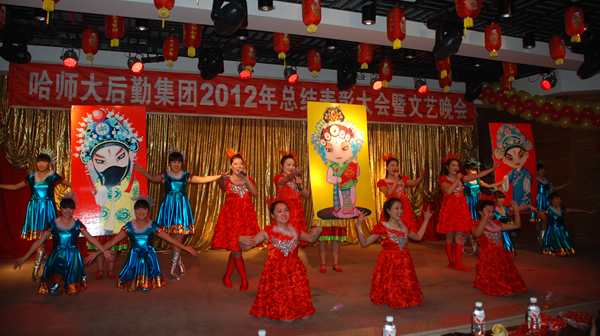 至此,后勤集团2012年总结表彰大会圆满结束,一台由后勤人自编、自导、自演的精彩文艺演出拉开了序幕。文艺节目形式多样,内容丰富,有歌伴舞、情景剧、二人转、小品、大合唱等等,赢得了现场观众一次又一次雷鸣般的掌声。最后,饮食服务中心以激情澎湃、气势恢宏的大合唱《祖国不会忘记》、《走向复兴》,为晚会划上了圆满的句号。