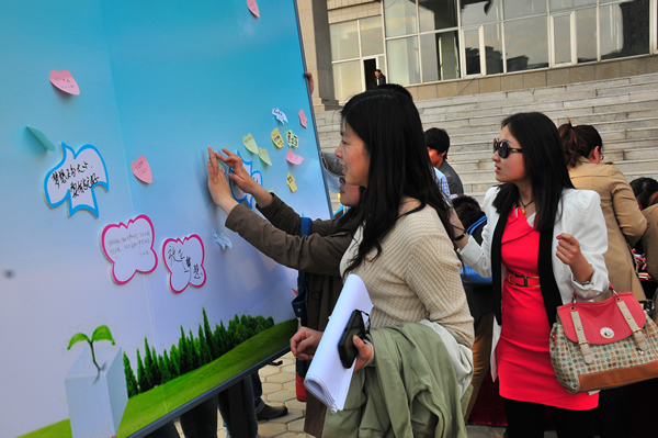 图2 师生在梦想墙上粘贴梦想信封