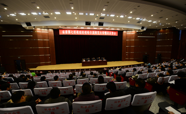 1月13日下午,根据省委统一部署,省委第七巡视组在我校科学会堂向我校反馈巡视工作情况。省委第七巡视组组长张云志反馈意见,我校党委书记主持会议并作表态讲话。巡视组副组长所林及巡视组其他成员出席会议。学校领导班子成员,各学院党委书记、院长,机关及附属单位主要负责同志,离退休校领导,各民主党派负责人,省级重点学科带头人,具有正高级专业技术职务人员等参加会议。