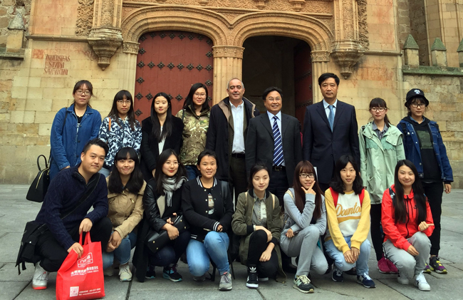 图 校党委书记与正在萨拉曼卡留学的我校学生合影