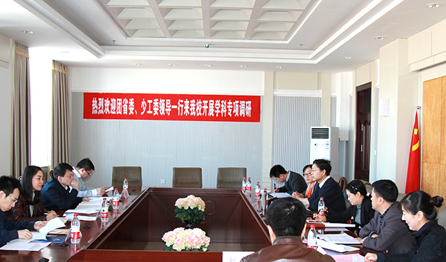 (刘博/文)3月23日上午,团省委副书记、省少工委主任陈苏,团省委少年部部长、省少工委副主任房丽敏,团省委少年部副部长侯宜辰,省少先队总辅导员陈德秋一行来到我校开展学科专项调研。校党委书记与学科调研组的成员进行了亲切会面和深入交流,并代表学校党委对团省委给予我校“少年儿童组织与思想意识教育”学科建设的大力支持表示感谢,表示将继续大力支持该学科发展,努力为我省少年儿童德育工作培养杰出人才。