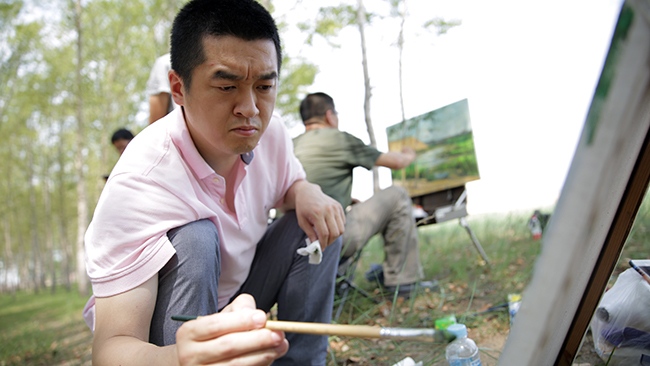 赤日炎炎,云蒸林海。三伏天的高温丝毫不能阻挡爱心的脚步,18日上午7点,我校美术学院刘洪达等四位青年画家,来到一心乡林场(提子种植园、富裕正洁寺)进行“美丽乡村”写生创作。柳垂杨郁、万木葱茏,一心林场以其独特的魅力吸引着画家们的眼光,激发了画家们的创作灵感。