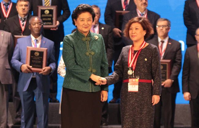 图 国务院副总理刘延东为获得孔子学院先进个人的王凤英老师颁奖