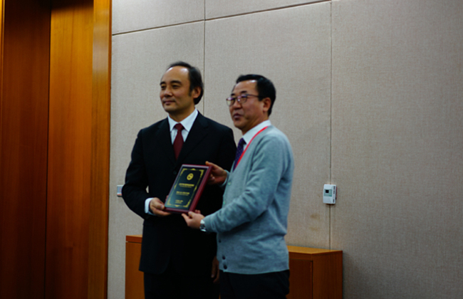 图 国家汉办副主任赵国成为获得优秀汉语考试考点韩国大真大学孔子学院中方院长崔松鹤颁奖