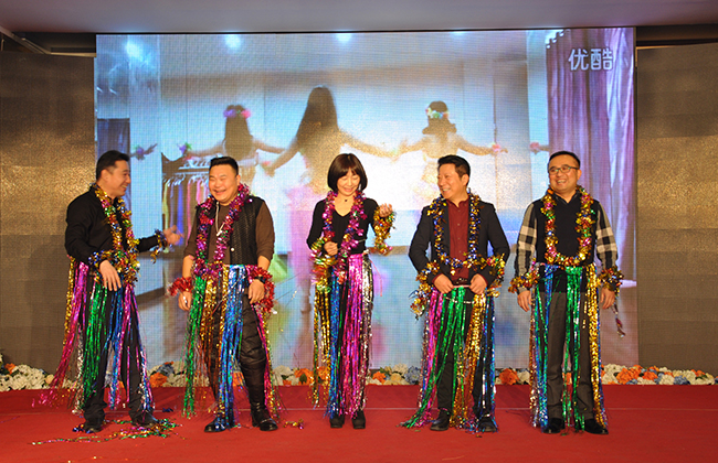 奖励大会结束后,音乐学院“共筑新路 奏响强音”2018教职工联欢会正式开始。会场张灯结彩、蓬荜生辉,随着一个个精彩节目的陆续演绎,现场气氛更加欢乐祥和、喜气洋洋,广大教职工笑逐颜开,欢声笑语此起彼伏。学院领导班子成员披挂彩装跳起了草裙舞,一改往日的严肃而变得超萌可爱。五位教师上台模仿影视剧中的经典动作,惟妙惟肖。音教系表演的古装剧《甄嬛后传》和声歌系反串表演的歌曲《纤夫的爱》搞笑十足。四对夫妻上台深情表白“我爱你”,温情满满、感动爆棚。两外,“吃苞米”、“顶气球”等游戏项目也是趣味多多。