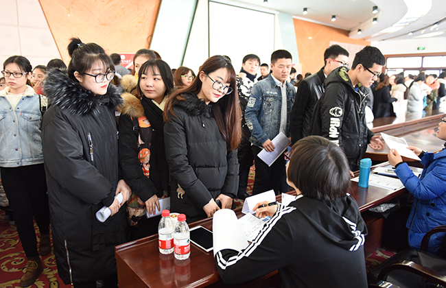 签字仪式后,上海松江区教育局十一所学校和幼儿园联合举办了哈师大2018年首场师范专业毕业生专场招聘会,主要涉及语文、数学、英语、政治、历史、物理、地理、化学、生物、心理和学前教育等专业。我校共有400余名毕业生参加了此次招聘会。