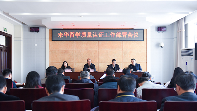 孙立军在讲话时指出,学校将于6月30日前接受国家第三批来华留学质量认证,这是教育部对学校留学生教育和管理工作的一次全面检验。近年来,我校来华留学工作取得了长足发展,留学生生源来自五大洲46个国家,留学生招生呈现多样化。2017年留学生规模突破1000人次,其中学历生392人,包括硕士研究生179人、博士研究生51人。关于如何做好认证工作,孙立军强调,要从国家战略角度认识质量认证工作对学校推进大学国际化进程的重要意义,明确国家对质量认证的工作思路和步骤;要抓住机遇,让同行专家为学校来华留学教育工作会诊把脉,建立规范的可持续发展的质量保障模式;要进一步明确我校来华留学教育的办学定位和发展目标;要转变教育理念,坚持成果导向的教育理念、坚持以学生为中心的教学理念、坚持持续改进的教学评价理念,推进来华留学教育国家战略对接,服务地方经济社会发展。孙立军强调,相关部门要以质量认证为契机,全面梳理学校来华留学各项工作,查找问题,补齐短板,健全来华留学教育和管理体系,完善留学生教育教学硬件设施保障条件,全面提升我校国际化办学水平和来华留学教育培养质量。