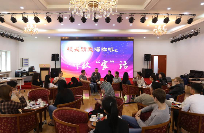 (闫蕾/文)9月21日下午,为喜迎中秋佳节,让我校国际学生体验中国传统节日文化,感受浓浓的中国团圆之情,国际教育学院举办的“校长请我喝咖啡之中秋‘家’话”活动在留学生三公寓多功能厅举行,校党委常委、副校长何晶出席活动。国际教育学院相关领导和各办公室工作人员,以及来自俄罗斯、韩国、塞尔维亚、新西兰等20余名国际学生新生代表参加了此次活动,活动由国际教育学院院长张晓涛教授主持。现场俄语、韩语、英语翻译都由学院国际学生担当。