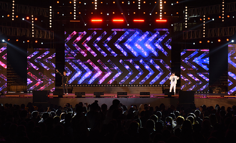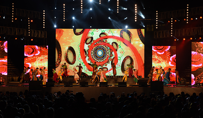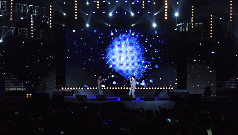 在大气恢宏的学校宣传片后,晚会在充满活力与朝气的歌舞《我爱哈师大》中正式拉开帷幕,青春洋溢的歌舞瞬间点燃全场观众的热情;歌剧《图兰朵》选段《今夜无人入睡》旋律激昂高亢、气势磅礴,把音乐意境演绎到了极致般的辉煌,令人深深为之震撼;歌曲《我爱你塞北的雪》、《山丘》、《夜空中最亮的星》以歌言志、以乐动人,其独特魅力彰显了我们的信念和精神;北方少数民族联舞《万紫千红新时代》以舞抒怀,尽情展现民族团结一家亲;歌曲《阳光路上》、《江山》用音符描绘了一幅祖国的江山长卷,描绘了中国绝美的壮阔蓝图;《给你点颜色》让观众眼前一亮,展现了生动的、充满热情的、回归质朴的生活状态;健美操《向阳而生》、校园十佳歌手联唱《放飞青春梦》展现了师大学子蓬勃的朝气与积极向上的精神风貌;由国际教育学院留学生带来的《相亲相爱》表现了以师大为家、以中国为第二故乡的赤诚之爱;《好儿郎》、《我的祖国》唱出了每个普通中国人无上的骄傲与光荣,让我们听到了在饱满的真情中坚定的“中国梦”;歌曲《新时代新思想新征程——在此刻》展现了哈师大人向着明天、向着未来,万丈雄心,脚踏实地,昂首迎接新时代的坚定信念。晚会现场还设置了紧张刺激的幸运抽奖环节,随机为四名2018级新生送上了精美礼品。