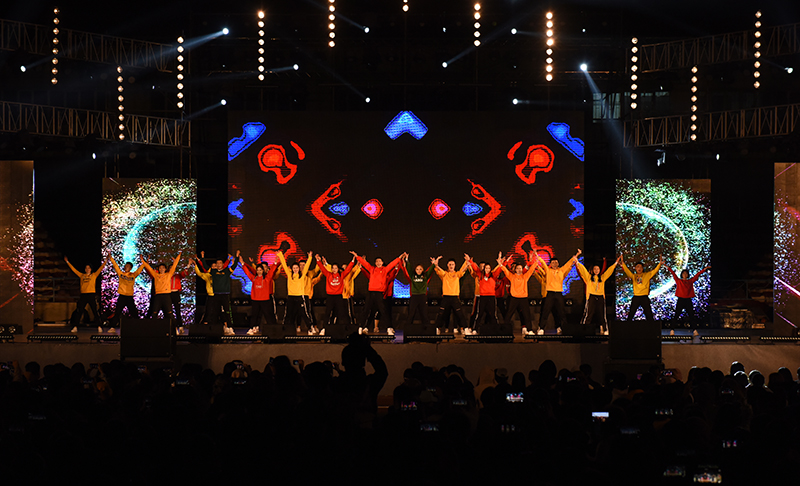 (刘强/文)为宣传贯彻党的十九大精神,纪念改革开放40周年,喜迎国庆69周年,落实全国教育大会精神,推进美育教育,繁荣校园艺术文化,体现我校高度重视以文化人、以文育人的优秀办学传统和人文精神,在2018级新生入学之际,我校于9月26日在江北校区体育场隆重举办了“情系师大·同心圆梦”2018拼搏在线登录“庆国庆·颂改革·迎新生”大型歌舞晚会。团省委副书记王淑滨,我校党委书记,校长孙立军,党委常委、副校长杨锐锋,党委常委、副校长马明,党委常委、纪委书记郭加利,党委常委、副校长何晶,党委常委、组织部长刘柏清等学校领导及各部处负责人,团哈尔滨市南岗区委、团哈尔滨市呼兰区委部分领导及我校全体2018级新生万余人现场观看了演出。