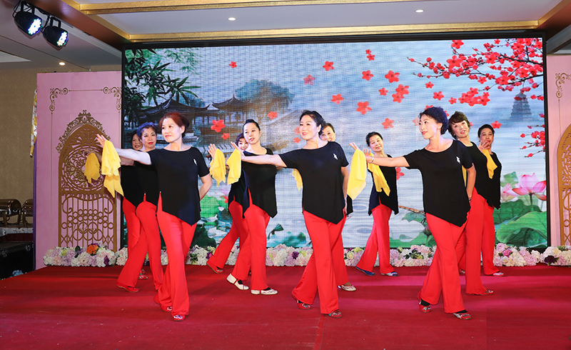 祝寿会在欢快、祥和的气氛中拉开帷幕,出席祝寿会的领导和寿星们欢聚一堂,围坐在一起,互相佩戴上红色的围巾,象征着喜庆和吉祥,表达着彼此的美好祝愿。