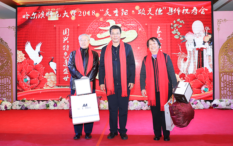 图 校长孙立军为寿星代表发送祝寿礼品