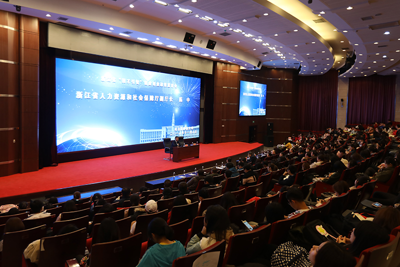 (杨宗/文)11月8日,浙江省人才市场-拼搏在线登录地校教育人才战略合作对接会暨浙江省“招财引智”就业创业政策宣讲会在我校江北校区科学会堂召开。我校副校长臧淑英、浙江省人力资源和社会保障厅副厅长陈中等出席会议。臧淑英主持会议。我校学生就业指导处处长张旭东与浙江省人才市场主任徐露辉代表双方签署战略合作协议。我校各有关部门、各学院领导以及毕业年级辅导员、学生代表400余人参加会议。