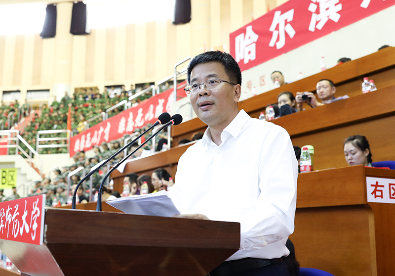 孙立军对2019级新同学提出三点希望:一是希望同学们树立为国奋斗的远大理想。家国情怀是我们哈师大人最重要的文化基因。同学们是与新时代共同前进的一代,是实现中华民族伟大复兴中国梦的生力军。希望同学们也能像师兄师姐那样,把自己的人生理想同祖国的前途、民族的命运紧密联系在一起,把自己的小我融入祖国的大我之中,在“为民奋斗,为国奉献”中实现自己的人生价值和人生理想;二是希望同学们不断锤炼品德修为。“至真、至善、至美”是我们“哈师大人”永远不变的人格追求。大学不仅是学习知识与传播文化的殿堂,更是是锤炼品德和健全人格的殿堂。希望同学们在大学里不断修身立德,打牢道德根基,涵养浩然之气,弘扬正能量,自觉树立和践行社会主义核心价值观,从中华民族传统美德中汲取道德滋养,从英雄人物和时代楷模的身上感受道德风范,从自身内省中提升道德修为,做一个明大德、守公德、严私德的新时代青年,让清风正气、蓬勃朝气遍布整个校园;三是希望同学们努力练就过硬本领。大学阶段是人生最重要的时期,也是苦练本领、增长才干的黄金时期。希望同学们珍惜青春时光,下苦功,练“内功”,为将来的人生蓄满能量。聚沙成塔、集腋成裘,每一分努力,都将为未来成功增添砝码。大学是一个广阔的世界,可以任由同学们去探索和发现。伴着行知楼的晨钟和梦溪湖的晚霞,同学们即将在哈师大开启人生新的篇章。青春如歌,希望同学们在哈师大这个舞台上,把它唱得荡气回肠,唱得惊天动地!以梦为马,希望同学们现在就朝着梦想的方向,快马加鞭,开启自己的飞驰人生!