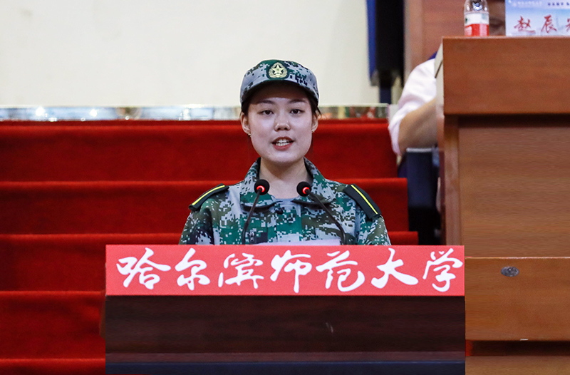 在校学生代表、校学生会主席、地理科学学院2017级地理科学专业董倩,江南校区学生会主席、传媒学院2017级广播电视学专业王茜在发言中,希望新一代哈师大人能够在敦品励学、弘毅致远的校训引领下,以青春之我,创造青春之中国。在实现中华民族伟大复兴的时代潮流中勇于担当、有所作为,创造属于自己的精彩人生。