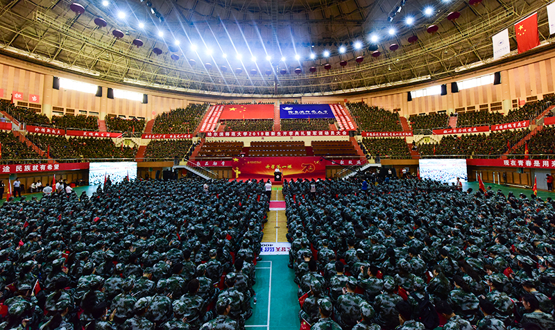 校党委书记以著名的“爱国三问”开篇,“你是中国人吗?你爱中国吗?你愿意中国好吗?”得到全场近万名新生响亮而坚定的回答,“是”“爱”“愿意”。