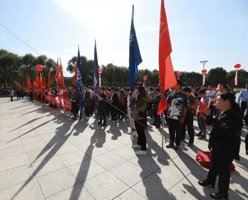 (李嘉炜/文)9月27日下午,由校工会组织的“壮丽七十年,阔步新时代”教职工徒步走活动在江北校区举行。全校近600名教职工齐聚在彩旗飘飘、歌声嘹亮的行知楼南广场,共同庆祝新中国成立70周年,表达对伟大祖国的深情祝福。党委副书记杨锐锋,党委副书记郭砾,副校长臧淑英,党委常委、纪委书记郭加利,党委常委、副校长赵科学,党委常委、工会主席李庆霞,党委常委、宣传部长姜玉洪,总会计师张志宏出席活动启动仪式,启动仪式由李庆霞主持。