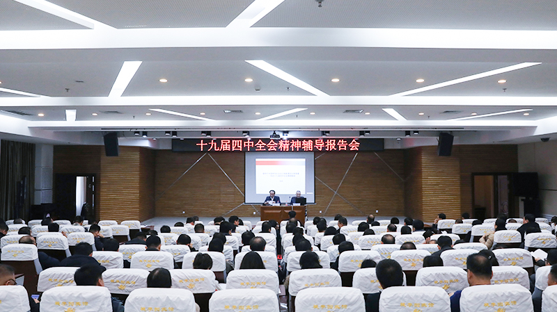 (盛志伟/文)为学习贯彻党的十九届四中全会精神,帮助广大党员干部进一步学习好、领会好、落实好会议精神,推动学校各项事业发展,11月22日,学校举办党的十九届四中全会精神辅导报告会。学校邀请中国政治学会理事、中国行政管理学会理事、黑龙江省公共管理学会副会长、黑龙江大学政府管理学院党委书记陈辉教授作了题为《新时代中国特色社会主义制度体系建设总体部署》辅导报告。学校领导班子成员出席报告会。全校现职副处级以上干部、全体辅导员参加报告会。报告会由党委常委、宣传部长姜玉洪主持。