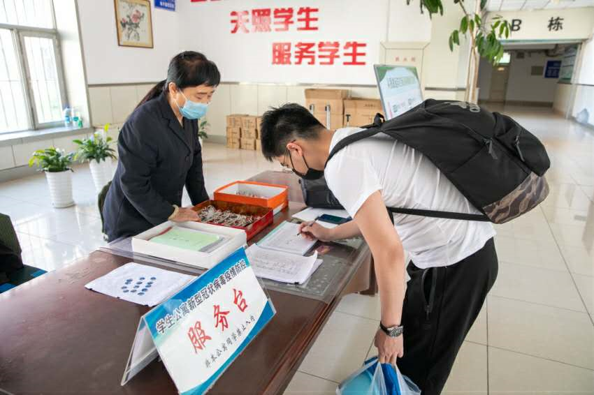 上午8点30分,第一辆返校复学研究生专车停靠在哈师大南门陶行知广场,校党委副书记郭砾,党委常委、副校长马明热情迎接返校研究生,为他们发放防疫“爱心健康包”,并送上温馨问候。在报到现场,返校学生经过行李消毒、健康码验证、身份核验、体温检测等环节后,按照防疫规定,由工作人员引导乘坐校园电瓶车直达经过清洁消毒的公寓“一人一寝”隔离观察间。在隔离观察期间,学校食堂将实行“网上预约订餐”并定时定点送至隔离点,待6月8日上午进行核酸检测合格后,学生们就可以在校内开始学习和实验工作。