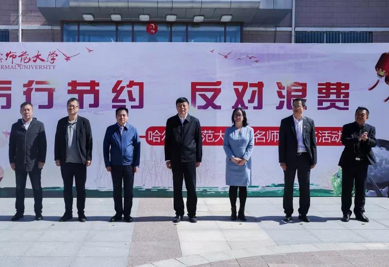 活动中,校学生会主席、地理科学学院董倩同学宣读了团中央、全国青联、全国学联致广大青年团员关于“勤俭节约、反对浪费”的倡议书。校行知青年志愿者协会主席、教育科学学院刘昕玉同学带领现场师生宣誓,争做节约粮食的实践者。