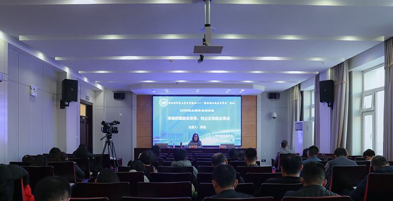 随后,郭砾就我校深入开展精准就业与帮扶行动作了指导讲座。讲座以线上线下结合方式进行,其中各学院党委副书记、毕业班辅导员参加线下讲座,2021届毕业生代表通过线上方式参加讲座。郭砾以《准确把握就业形势,树立正确就业观念》为题,从当前国际和国内形势、我省区域经济社会发展的情况、专业需求三个方面进行分析,帮助同学们准确把握当前就业形势;详细介绍人才需求的主要变化趋势,并结合自身经历,对毕业生提出了中肯的建议。郭砾用习近平总书记的话勉励同学们,要志存高远、脚踏实地,不畏艰难险阻,勇担时代使命,把个人的理想追求融入党和国家事业之中,为党、为祖国、为人民多作贡献。