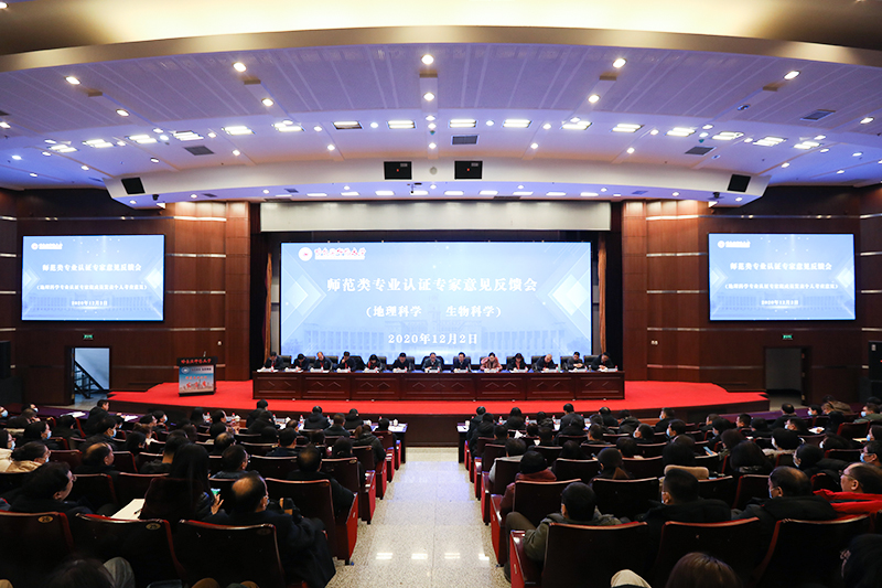 (盛志伟/文)12月2日上午,教育部师范类专业认证专家意见反馈会在我校科学会堂召开。地理科学专业认证专家组组长庄辉明及成员郑燕林、王勇、高树忠、常海敏,生物科学专业认证专家组组长毕华林及成员胡青平、王福义、舒志定、张志高,项目管理员张立明;省教育厅高等教育处处长王跃然、省教育评估院院长景丽英出席会议。校长孙立军等学校党政领导班子成员,全校现职副处级以上干部,学校督导,各学院专业负责人,生命科学与技术学院和地理科学学院全体教师,教务处、高教研究与教学质量评估中心、招生工作处、教师教学发展实训中心、教学实验设备管理中心全体人员及学生代表参加会议。反馈会由联合认证专家组组长庄辉明主持。