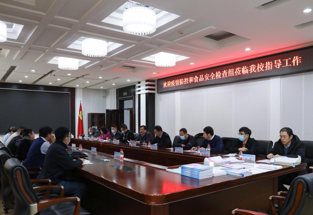12月9日下午,以省市场监督管理局二级巡视员张叶莉为组长的省市场监督管理局、省卫健委、省教育厅联合检查组一行6人来到我校,对疫情防控工作和食品卫生安全工作进行全面检查,并就检查情况进行座谈。党委常委、副校长尹剑锋陪同检查并主持会议。