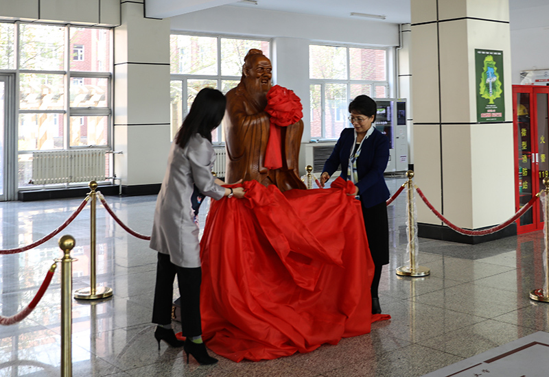 图 副校长臧淑英、校友张莉共同为孔子像揭幕