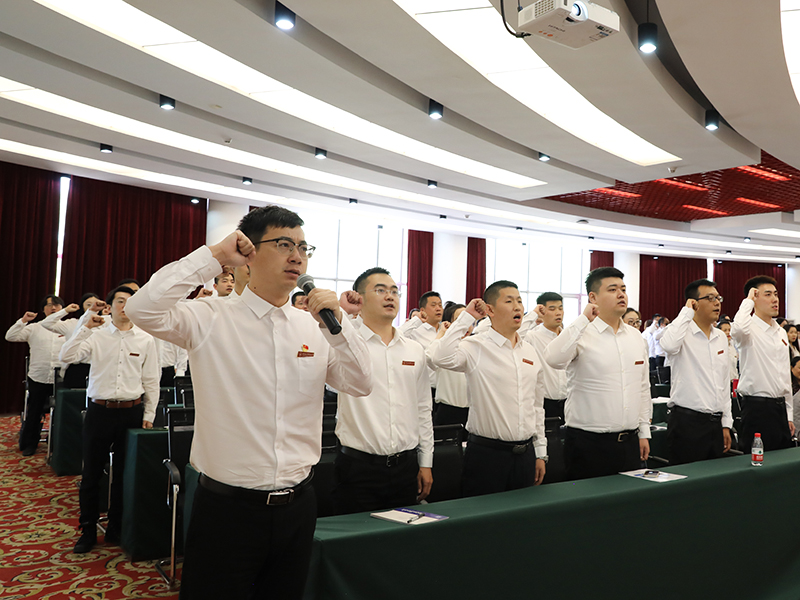在2021年教师岗前培训开班式上,2020年、2021年新入职教师进行了庄严的入职宣誓,学校领导为新入职教师佩戴校徽。