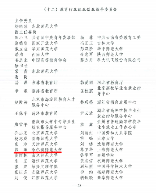 为贯彻落实党中央、国务院关于高校毕业生就业创业的工作部署,近日,教育部成立全国普通高校毕业生就业创业指导委员会,我校党委副书记、工会主席郭砾当选教育部首届全国普通高校毕业生教育行业就业创业指导委员会委员,兼任教育行业华北、东北地区就业指导组副组长,聘期为2021年5月—2025年5月。