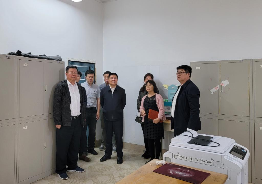随后,解宗军一行在学校领导的陪同下,实地踏查了我校招生录取中心和试卷保密室等场地的建设和设施设备情况,同时查看了学校自检自查的相关材料并观看了考生资格审查和评阅工作流程。