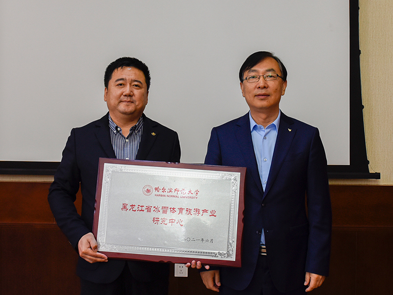 图 党委常委、副校长郝文斌为“黑龙江省冰雪体育旅游产业研究中心”智库授牌