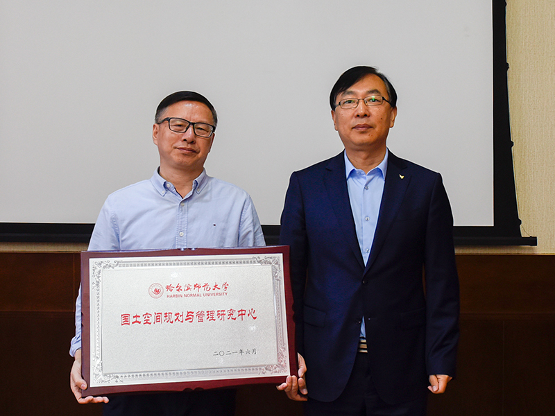 图 党委常委、副校长郝文斌为“国土空间规划与管理研究中心”智库授牌