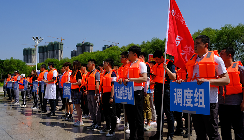 学校党委办公室、校长办公室、党委组织部、学生工作部、国有资产管理处、保卫处、图书馆、后勤管理处、产业处等单位200余人,抢险组、疏散组、救护组、辅助组、调度组等9个防汛演练工作组参加演练;直属机关党委抽调20余名党员干部组建“哈师大防汛抢险救灾党员突击队”;演练调动校园消防车、特勤车、救护车、工程车、园林绿化车等车辆10余台次,各种抢险物资300余件套。