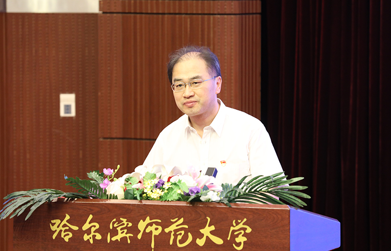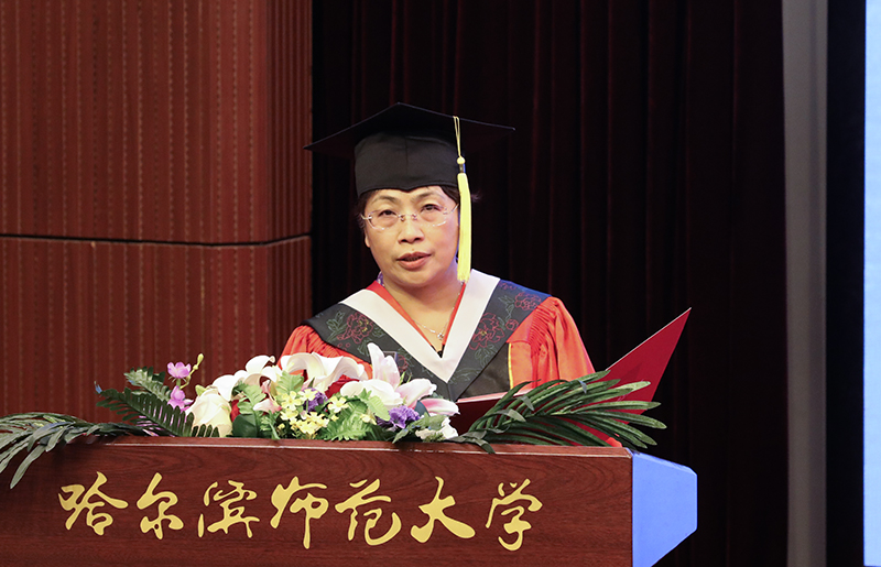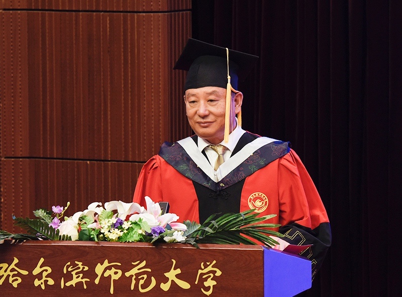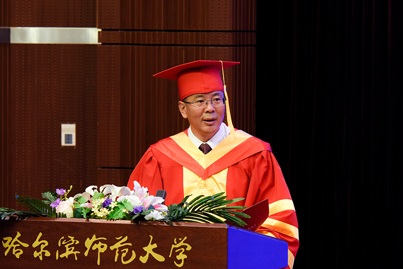 校学位评定委员会主席、校长、博士研究生导师孙立军教授在致辞中,代表全校师生员工向被授予学位的7602名本科生、1489名研究生表示热烈的祝贺,并提出了殷殷期望。孙立军指出,回首过去几年,同学们在哈师大学习知识、增长才干、收获友情,谱写了一曲曲壮丽的青春之歌。梦溪湖的天鹅,静听过你们晨读的书声;图书馆的灯光,映照过你们求索的身影;体育场的跑道,洒下过你们拼搏的汗水;艺术节的舞台,展现过你们靓丽的青春。行知精神、师范精神、校训精神,已经融入你们的血脉,你们的青春已经载入哈师大历史,你们的故事诠释了哈师大精神。回首过去几年,全校师生用汗水浇灌收获、以实干笃定前行,学校实现了高质量发展。因为你们,70岁的哈师大,恰是风华正茂,焕发出新的光彩与活力。这些年,你们不仅是学校发展的见证者,更是参与者和推动者,因为有了你们的支持,学校距离“国内一流师范大学”的发展目标更近了一步。