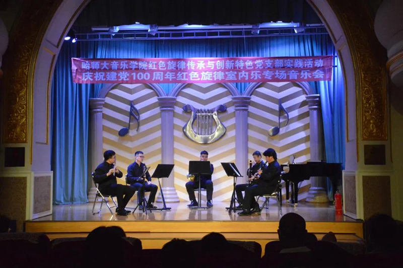 主题党日活动效果显著。传媒学院党委以“百年风华,永葆初心”为主题,从学习回顾党的百年伟大征程中汲取创作灵感,将党史学习教育与专业教学紧密结合,通过“红军不怕远征难”、“峥嵘岁月”、“家书”、“黑色血液”、“青春丰碑”五部剧目的展演,开展了一堂特色艺术党课。美术学院党委开展了“奋斗百年路,启航新征程”师生美术书法作品展主题党日活动,以书法作品的形式书党章、写党史,回顾和展现党的百年历程,描绘英雄人物和人民群众的精神风貌,构成恢宏壮观的气势和异彩纷呈的画卷,抒发师生对党的无限热爱和深情。音乐学院党委组织的“庆祝建党100周年管弦系红色旋律室内乐专场音乐会”在哈尔滨工人文化宫音乐厅上演,管弦系教师党支部结合专业特色,把红色基因与艺术作品相融合,由校园走向社会、由课堂走向舞台,让红色旋律得以传承与创新。经济学院党委组织党员党史宣讲团赴南马路小学开展“红色基因,薪火相传”主题党史宣讲活动,教育引导广大青少年了解光辉党史、感悟初心使命、传承红色基因、坚定理想信念。教育科学学院党委举办“初心向党迎百年,青春筑梦展新篇”师生红色文艺汇演,引导广大师生践行党的初心和使命。国际美术学院党委开展“百年风华——课程思政艺术教学成果作品展”主题党日活动,以课程思政艺术教学成果展为背景,让师生深切地感受到党史的厚度,让展厅成为感知峥嵘岁月、接受思想洗礼的精神场所。广大教师党员将党建工作与中心工作相融合,指导学生党员学好专业、用好专业,发挥好专业特色,开展与专业相结合的主题党日活动,促进了中心工作水平的提升,不断为学校发展建设作出新的贡献。