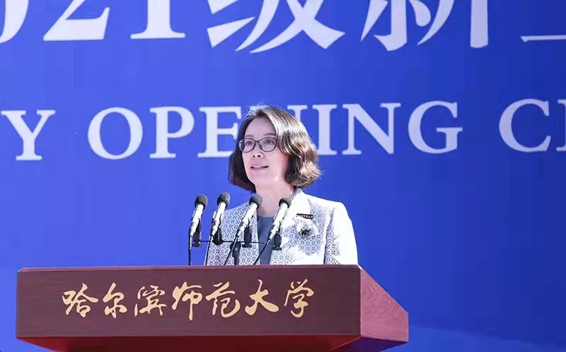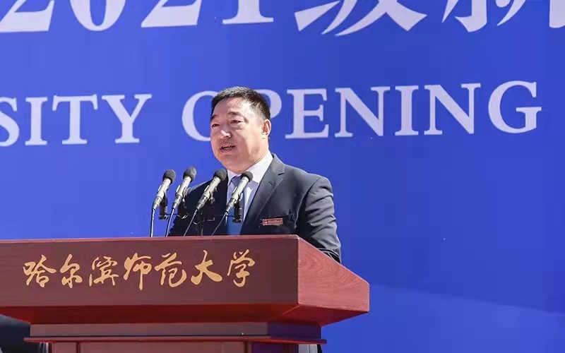 校党委书记以“传承弘扬伟大建党精神,在实践中绽放青春梦想”为题为2021级新生上了“开学第一课”。他向新入学的新生表示最诚挚的祝贺和最热烈的欢迎!向为孩子们的成长进步付出心血并将孩子送到哈师大的各位家长表示衷心感谢!