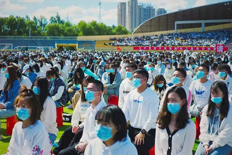 (盛志伟/文)金秋九月,叠翠鎏金。9月12日上午,学校2021级新生开学典礼暨开学第一课在江北校区体育场隆重举行。校党委书记、校长孙立军等学校党政领导出席开学典礼,校党委副书记、工会主席郭砾主持典礼。学校现职正处级干部、各学院党委副书记、全体新生辅导员以及2021级全体本科生、研究生万余名师生参加。
