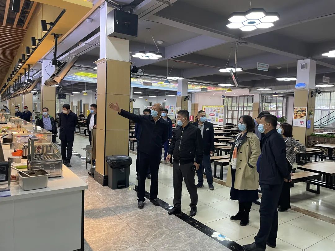 校领导一行还对食堂环境以及保洁消毒、餐具消毒、员工服务规范操作等工作进行检查。强调学校食堂要严格落实疫情防控工作要求和食品安全管理规定,确保疫情防控应急状态下校内饮食安全,切实为师生提供好服务保障。